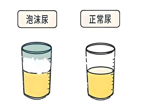 - 信号2:尿液出现细密、不易消散的泡沫(类似啤酒沫),可能是蛋白尿。