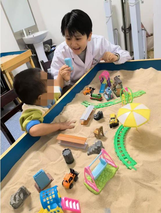 “沙盘就像是孩子的‘情绪行李箱’,而沙子和模型就是他们的‘单词库’。当孩子无法用语言说清自己的恐惧和焦虑时,他们的手会帮他们表达。”儿童康复科医生张莹解释道。