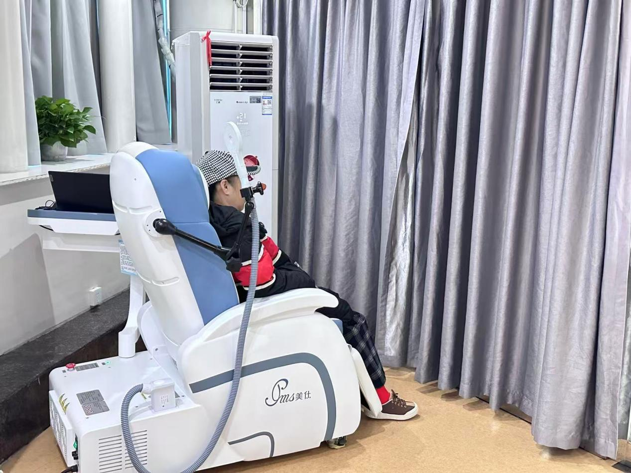 开始治疗:患者坐上特制磁刺激椅,无需脱衣;