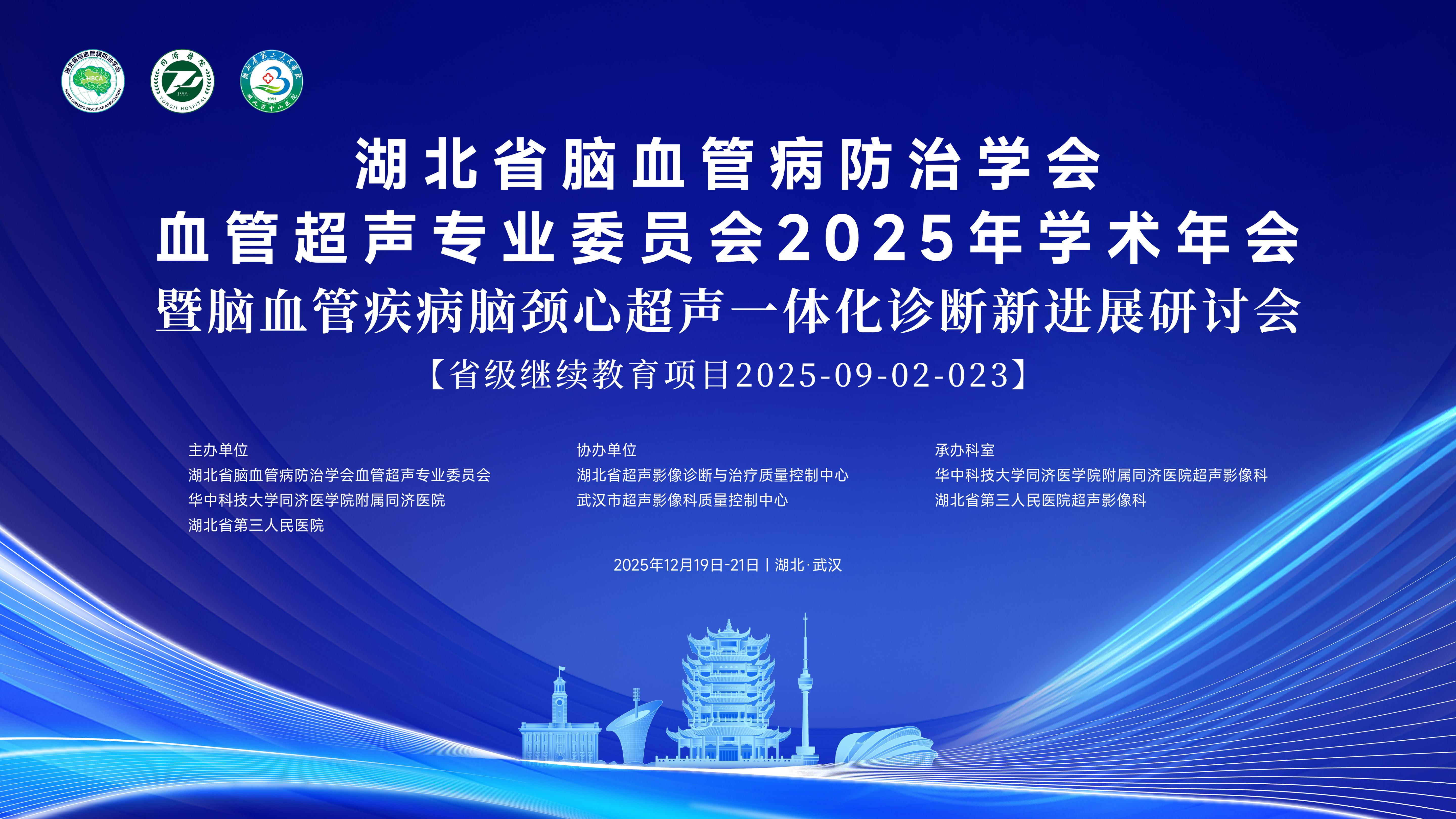 2025年12月19日至20日,湖北省脑血管病防治学会血管超声专委会携手湖北省第三人民医院(湖北省中山医院)、华中科技大学同济医学院附属同济医院,共同举办了2025年学术年会暨脑血管病脑颈心超声一体化诊疗新进展研讨会。此次盛会汇聚了来自全国的顶尖学者与行业精英,共同擘画血管超声领域的发展蓝图,以专业之光照亮脑血管病防治的征途。