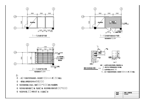 (一)原图纸2-3轴交D-1/D轴处,拆除1—4层电梯井道内的原有电梯设备。
